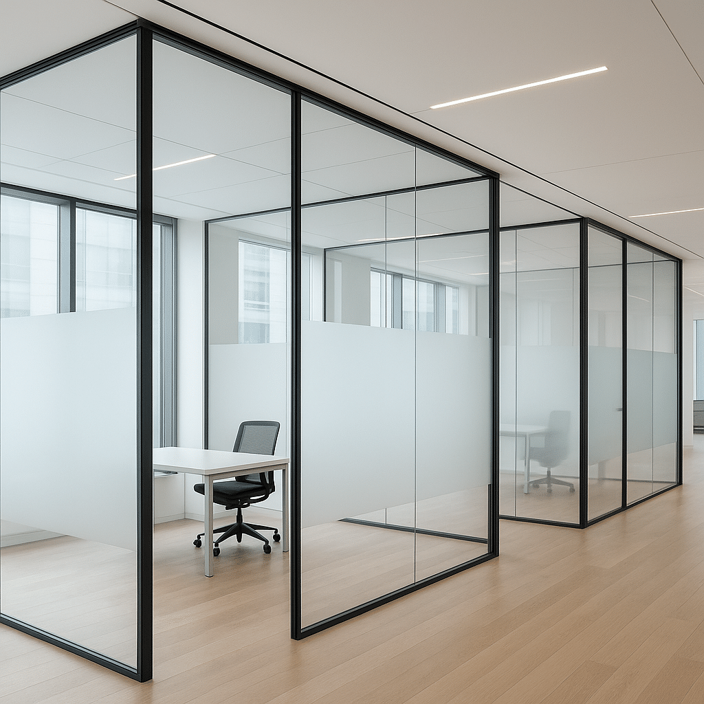 Teemme huoneiden lasiväliseinät turvalasista toiveidenne mukaan. Lasivahvuus, lasin väri ja tarvittaessa äänieristys suunnitellaan kohteen mukaan.